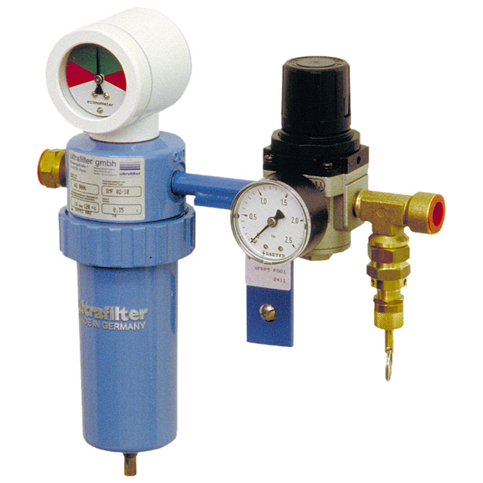 - Removes dust, water and oil from the compressed air